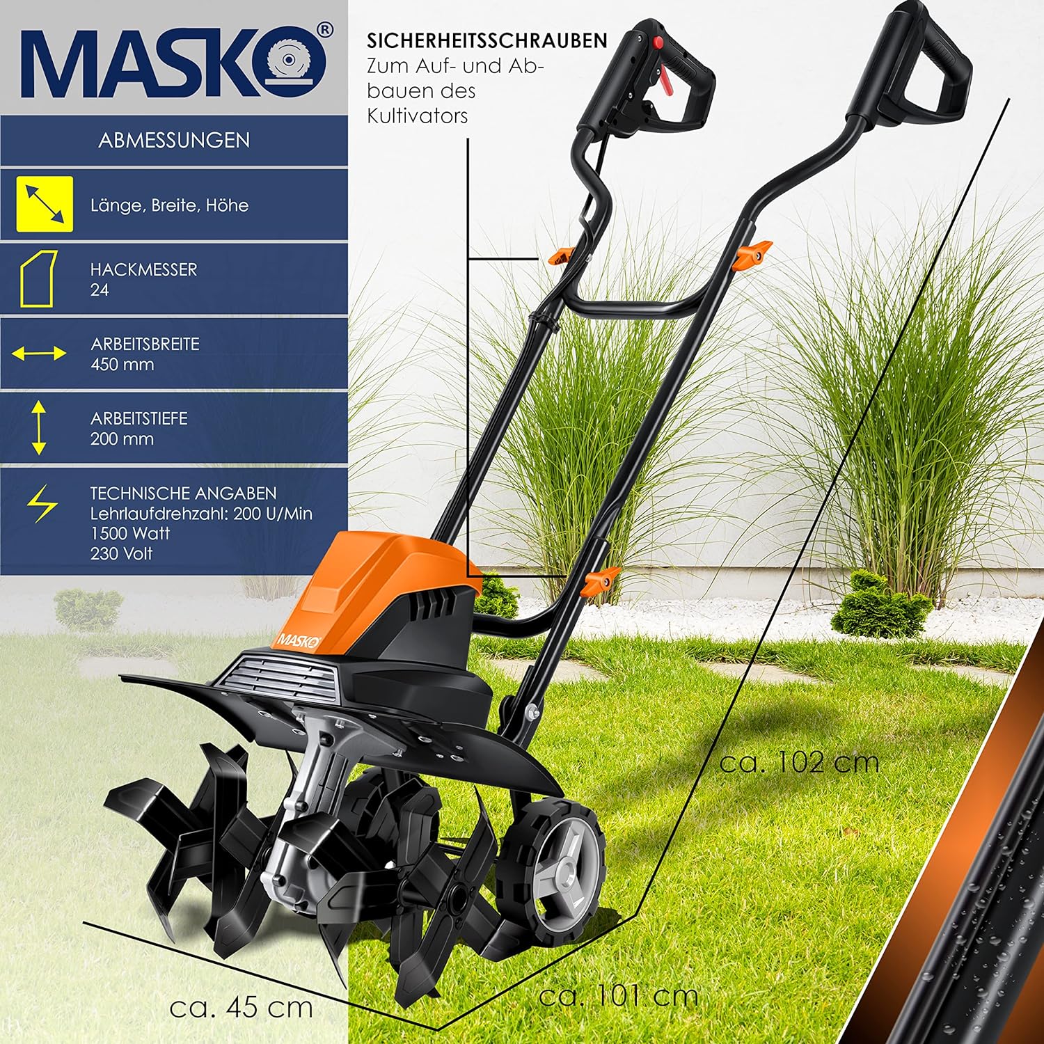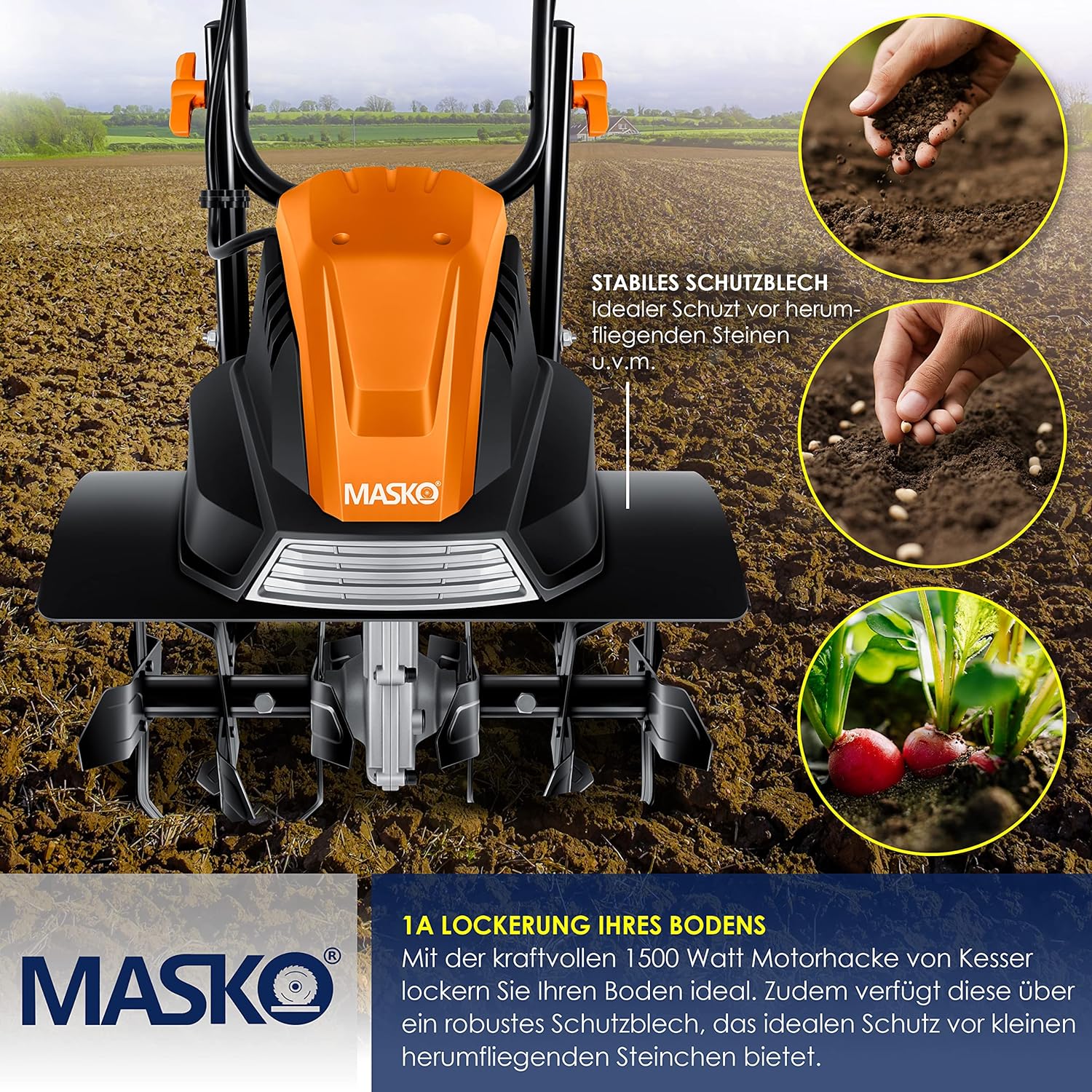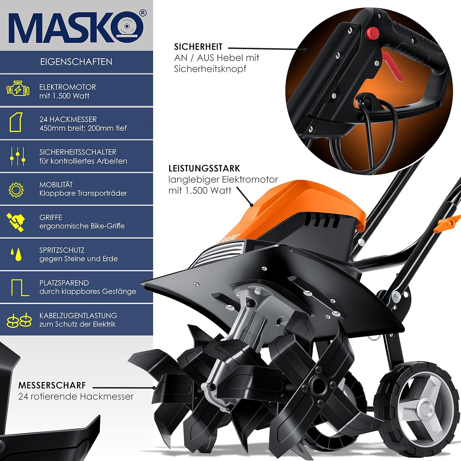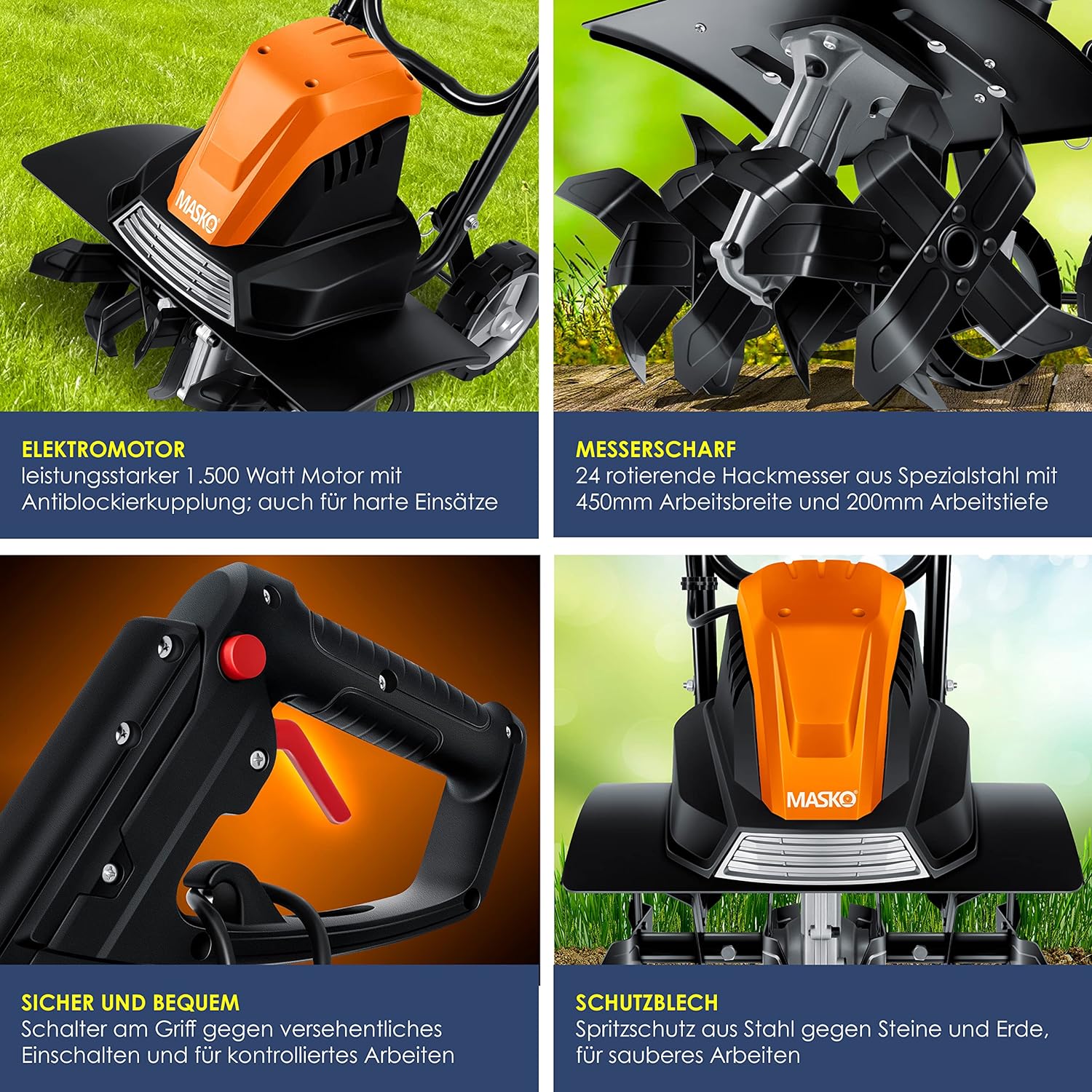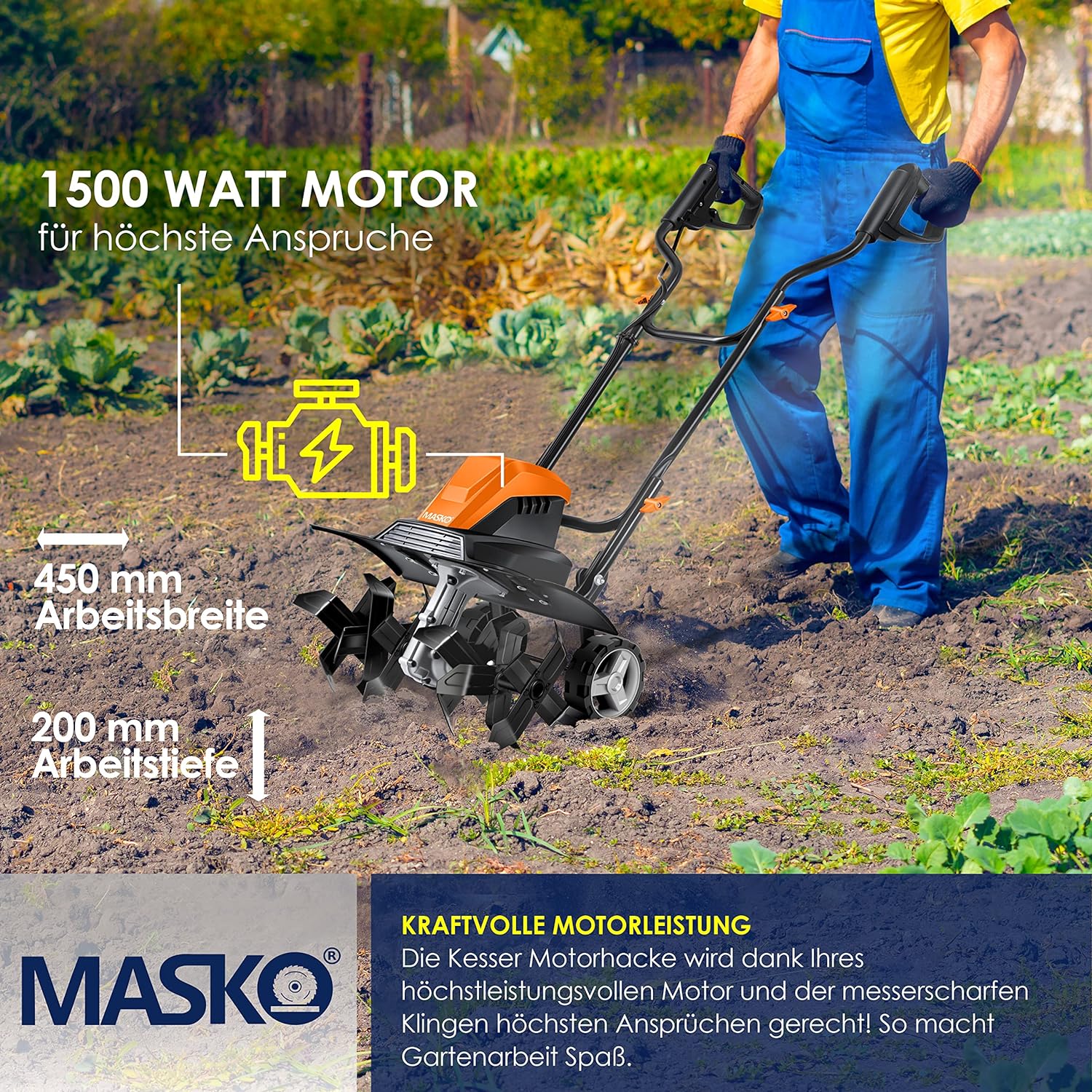 MASKO Electric tiller 1500 Watts | 45cm Working Width, 20cm Working Depth | Weeder | Strawberry Tiller | Cultivator | Garden Milling Machine | Electric hoe, Orange