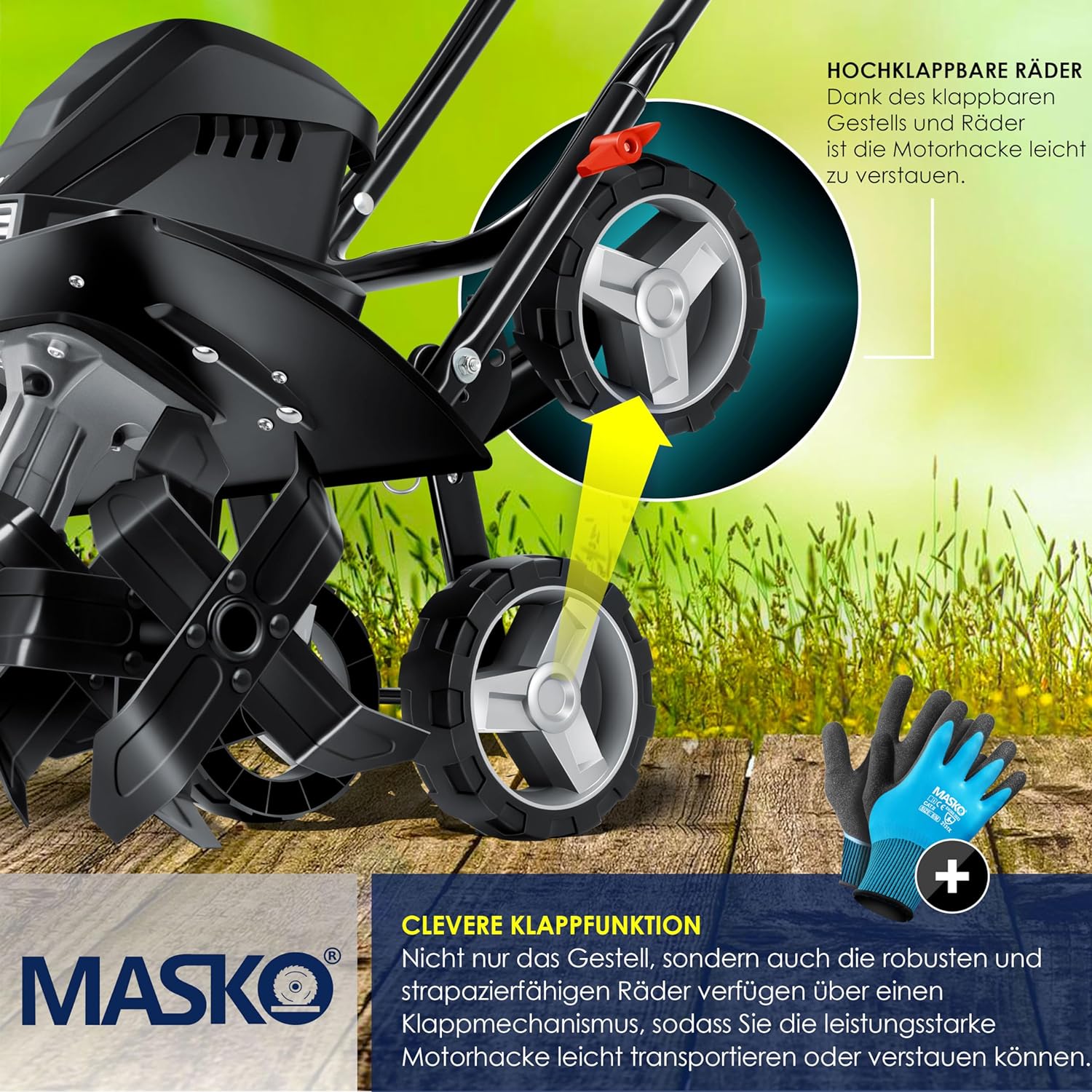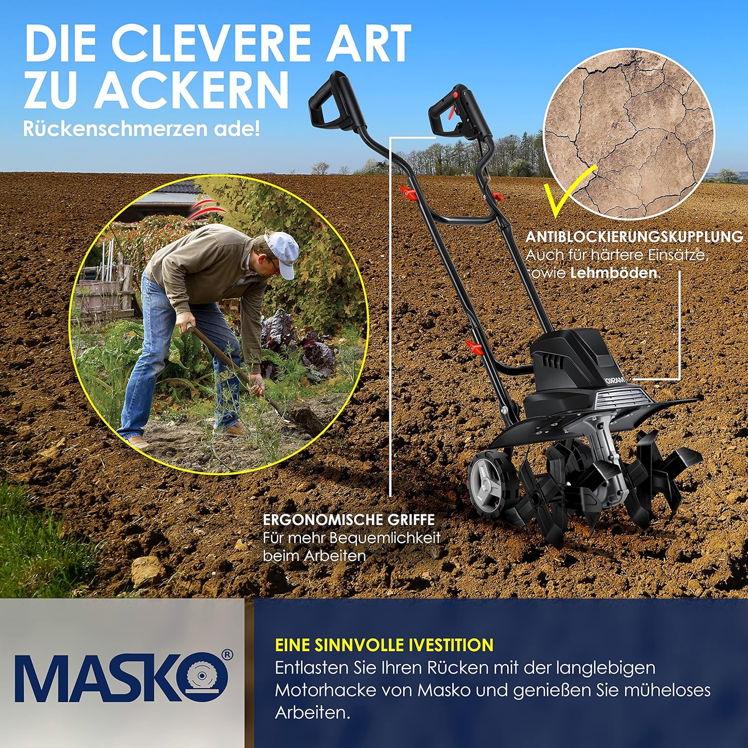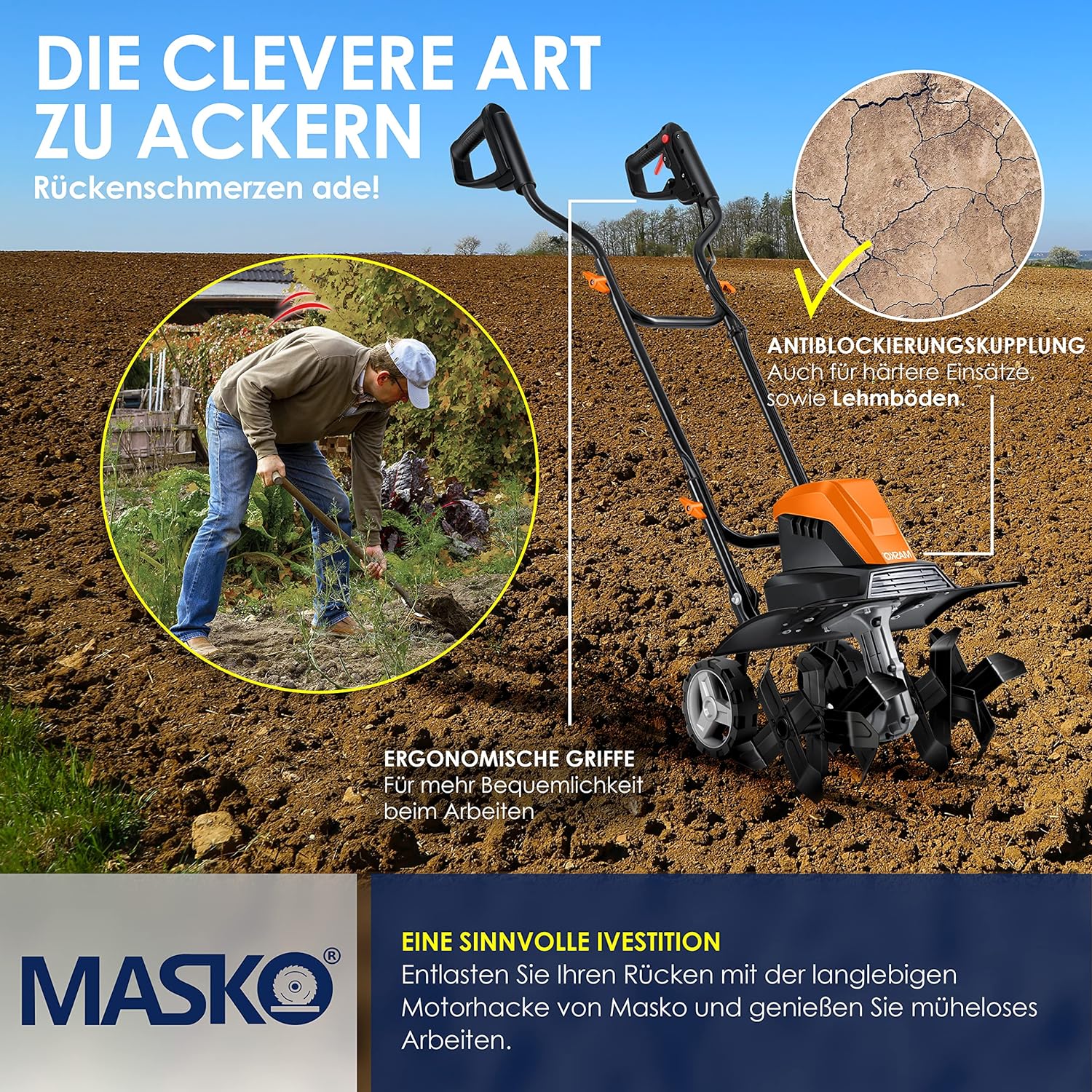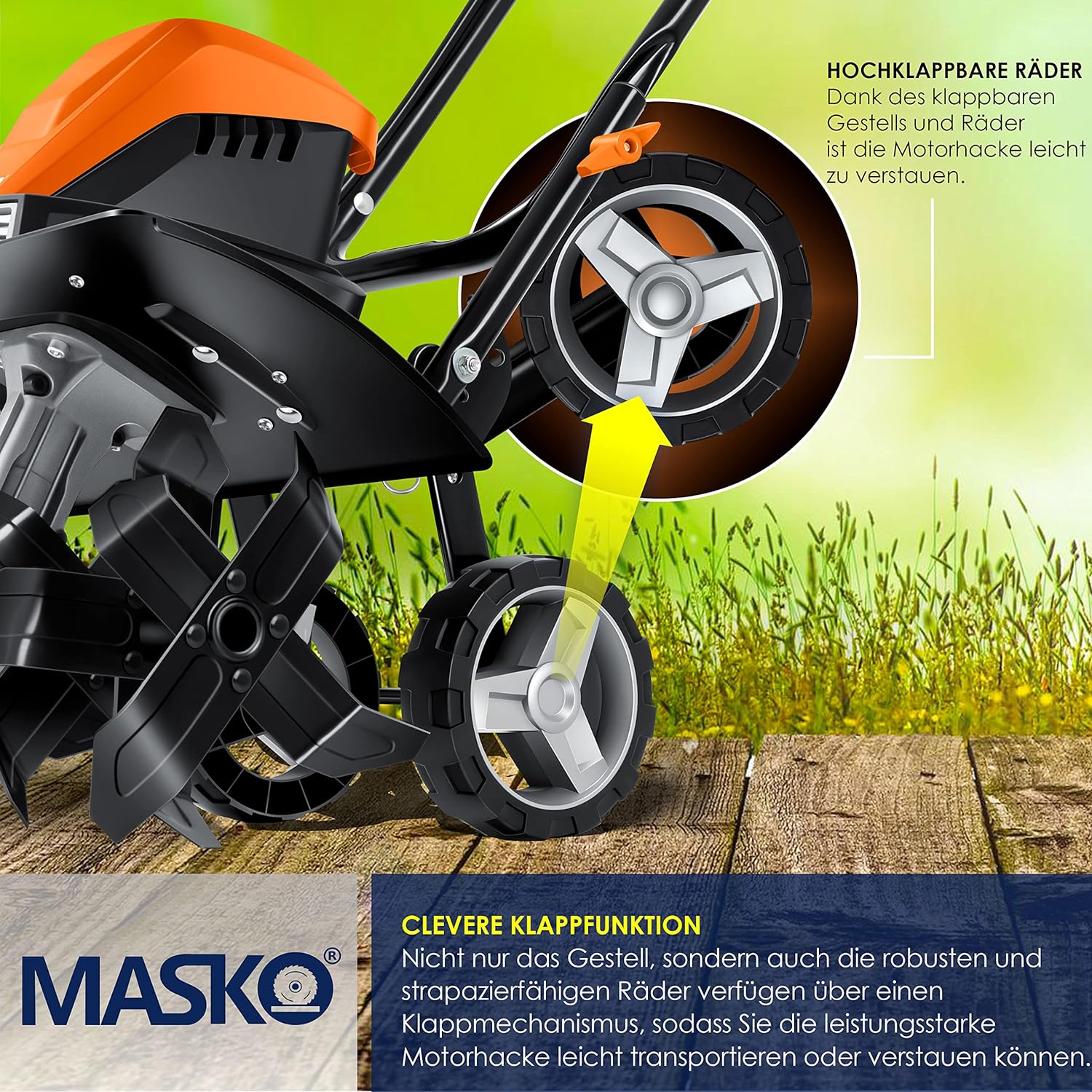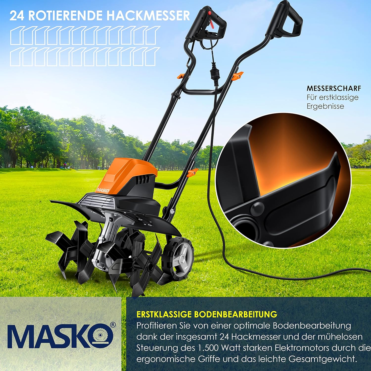 MASKO Electric tiller 1500 Watts | 45cm Working Width, 20cm Working Depth | Weeder | Strawberry Tiller | Cultivator | Garden Milling Machine | Electric hoe, Orange