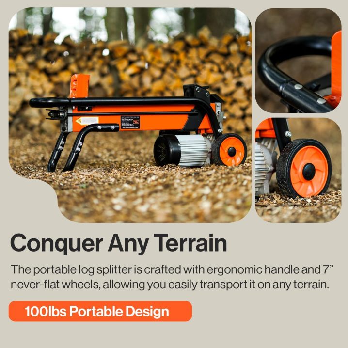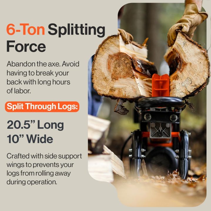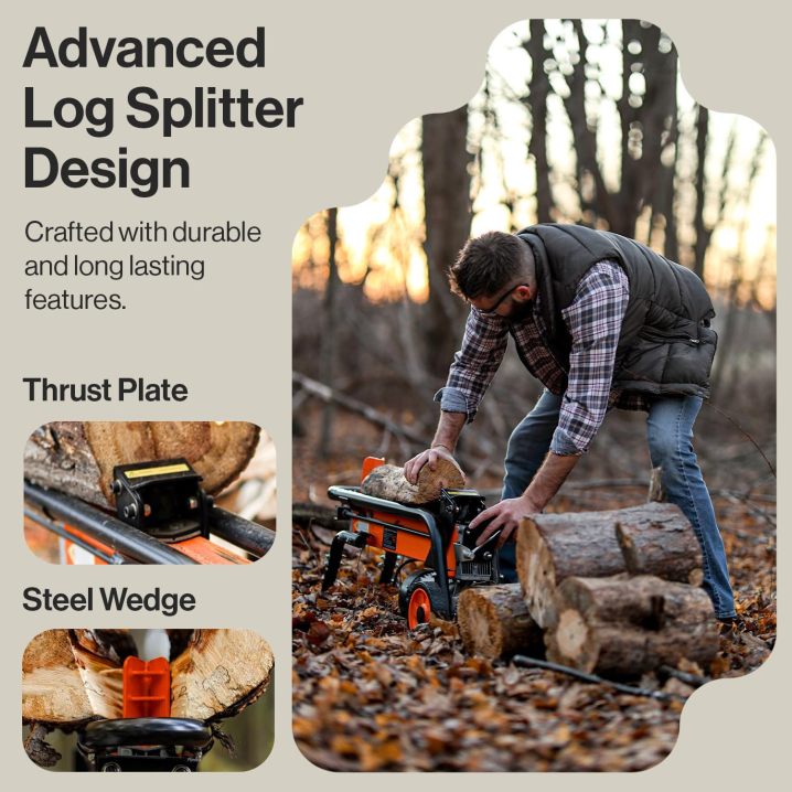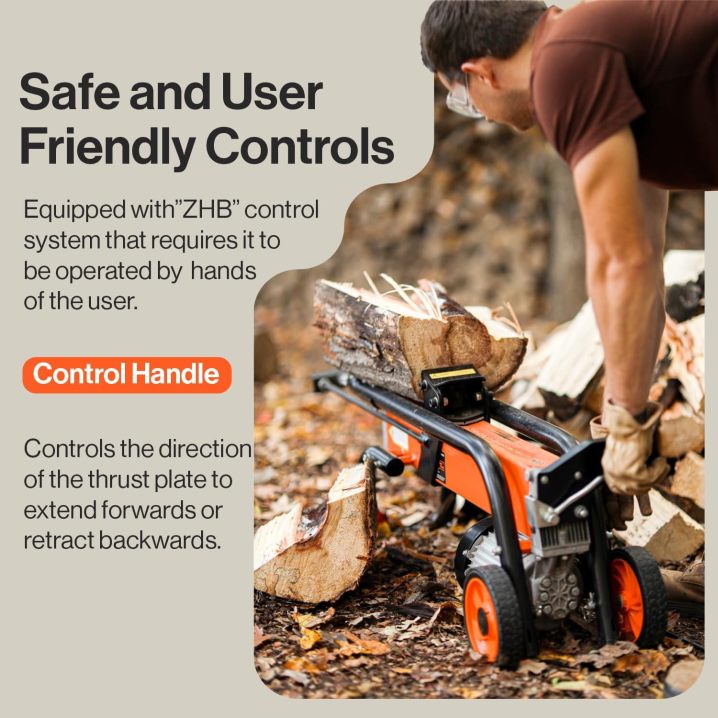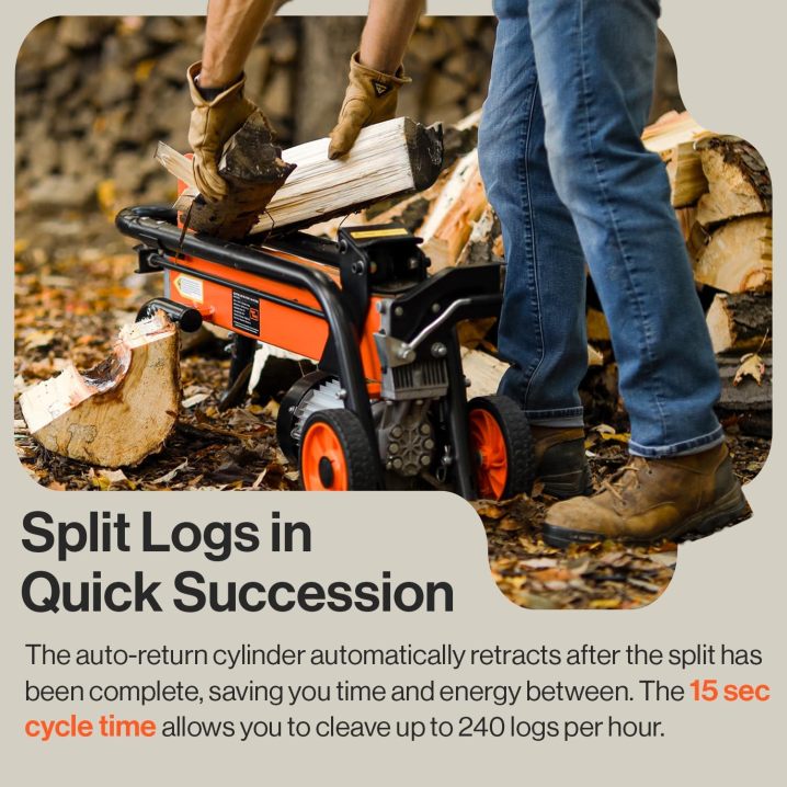 SuperHandy Log Splitter Portable 20 Ton Rapid Auto Return Ram System Bucher Gear Pump 7HP Engine Horizontal Full Beam Steel Wedge Firewood Splitting Forestry Harvesting