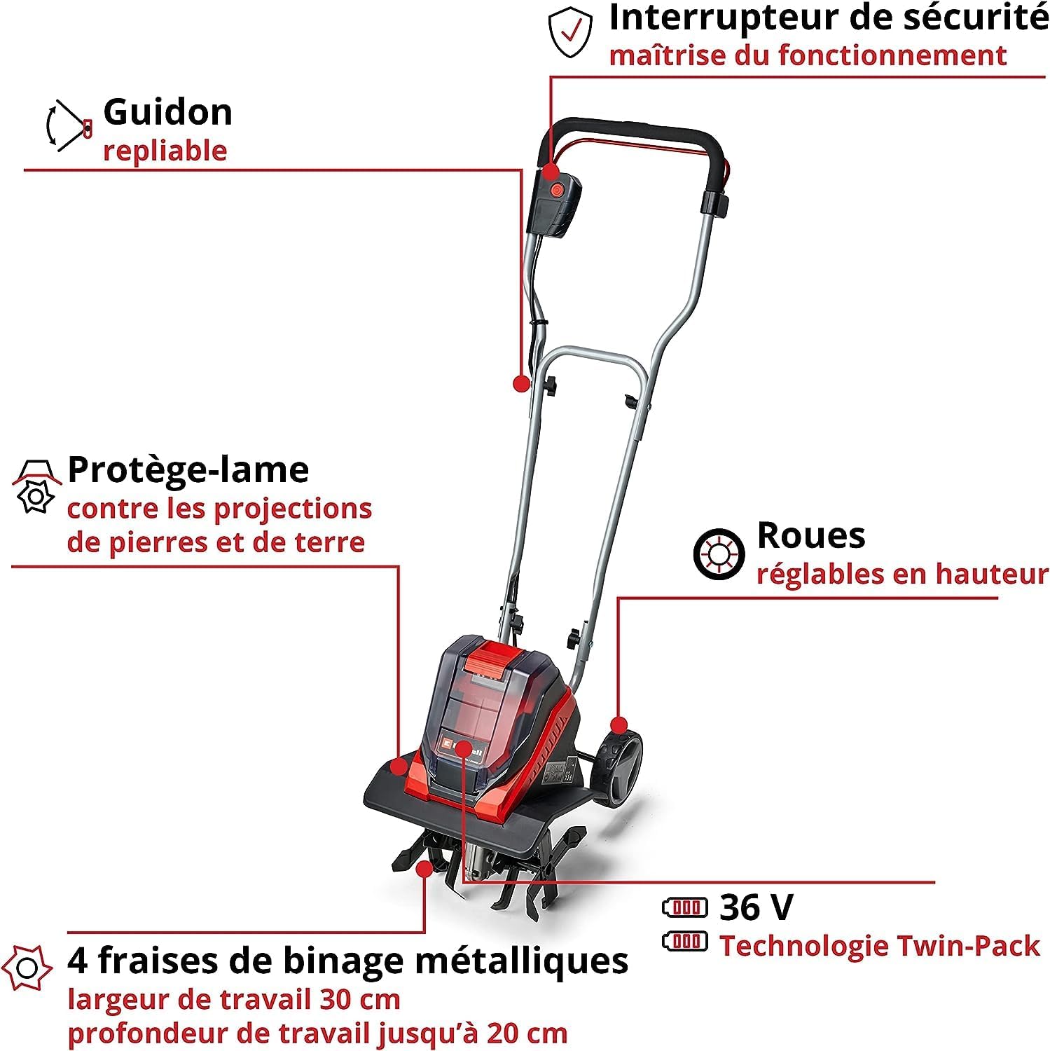 Einhell GE-CR 30 Li Solo cordless tiller - Power X-Change system (2x18 V, Brushless motor, Working width 30 cm, Working depth 20 cm, Delivered without battery or charger)