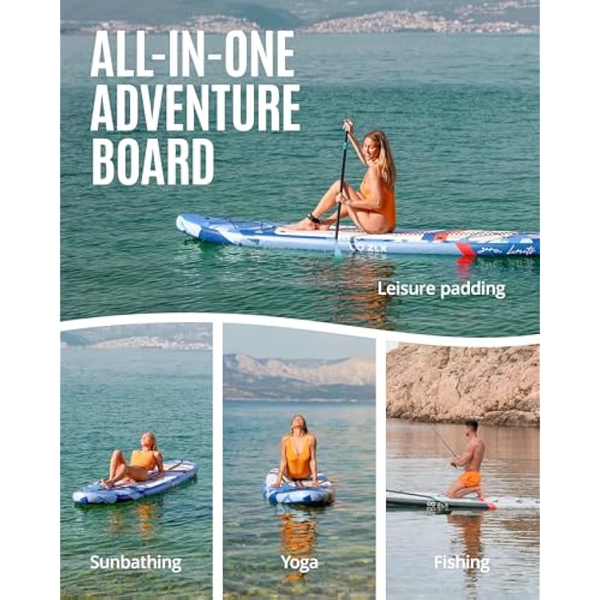 ZLX 11'6" Extra Wide Inflatable Stand Up Paddle Board SUP, Stable Non-Slip Deck Pad, Unique Fin System and Premium iSUP Accessories - Portable Backpack & Upgraded Pump for Adults, All Skill Levels