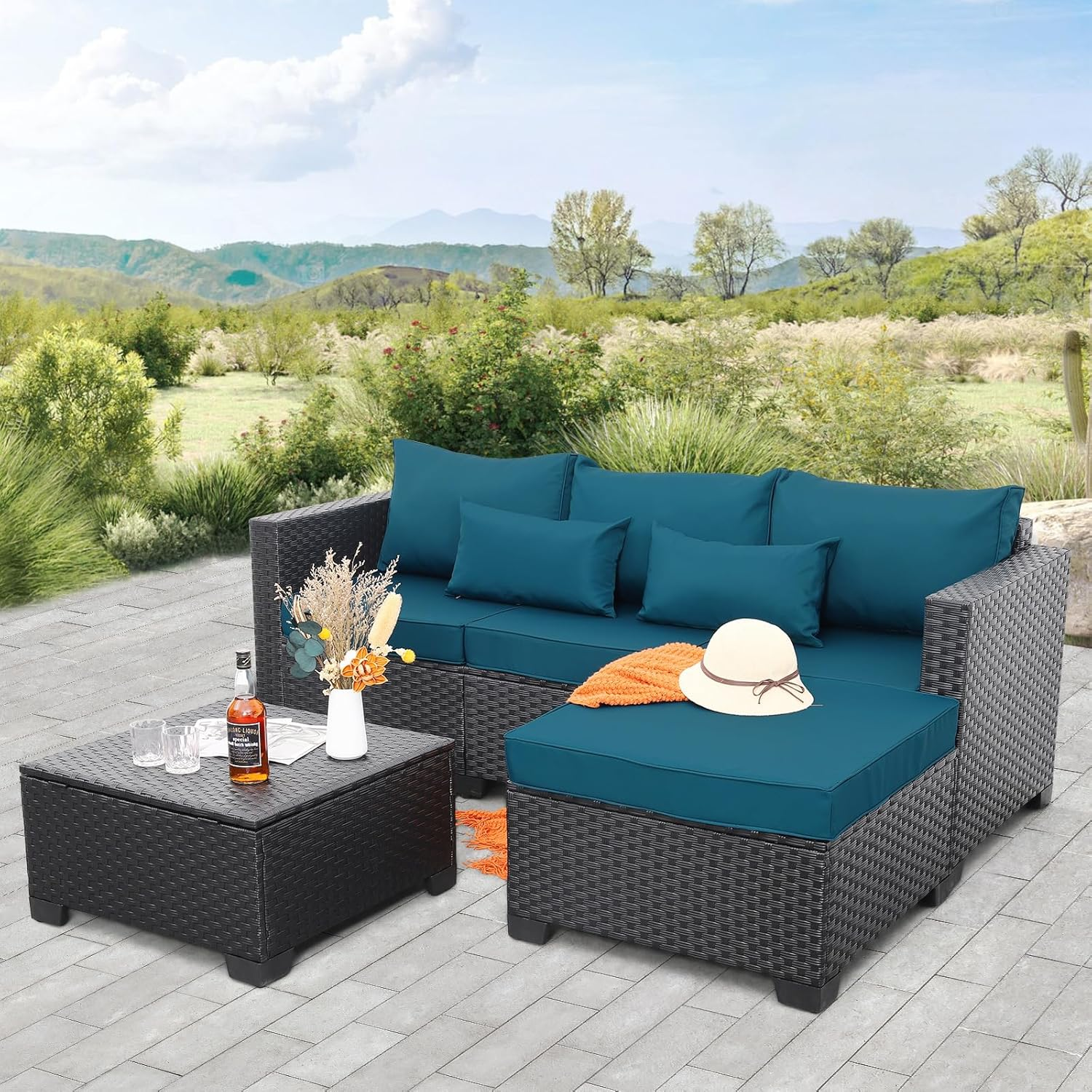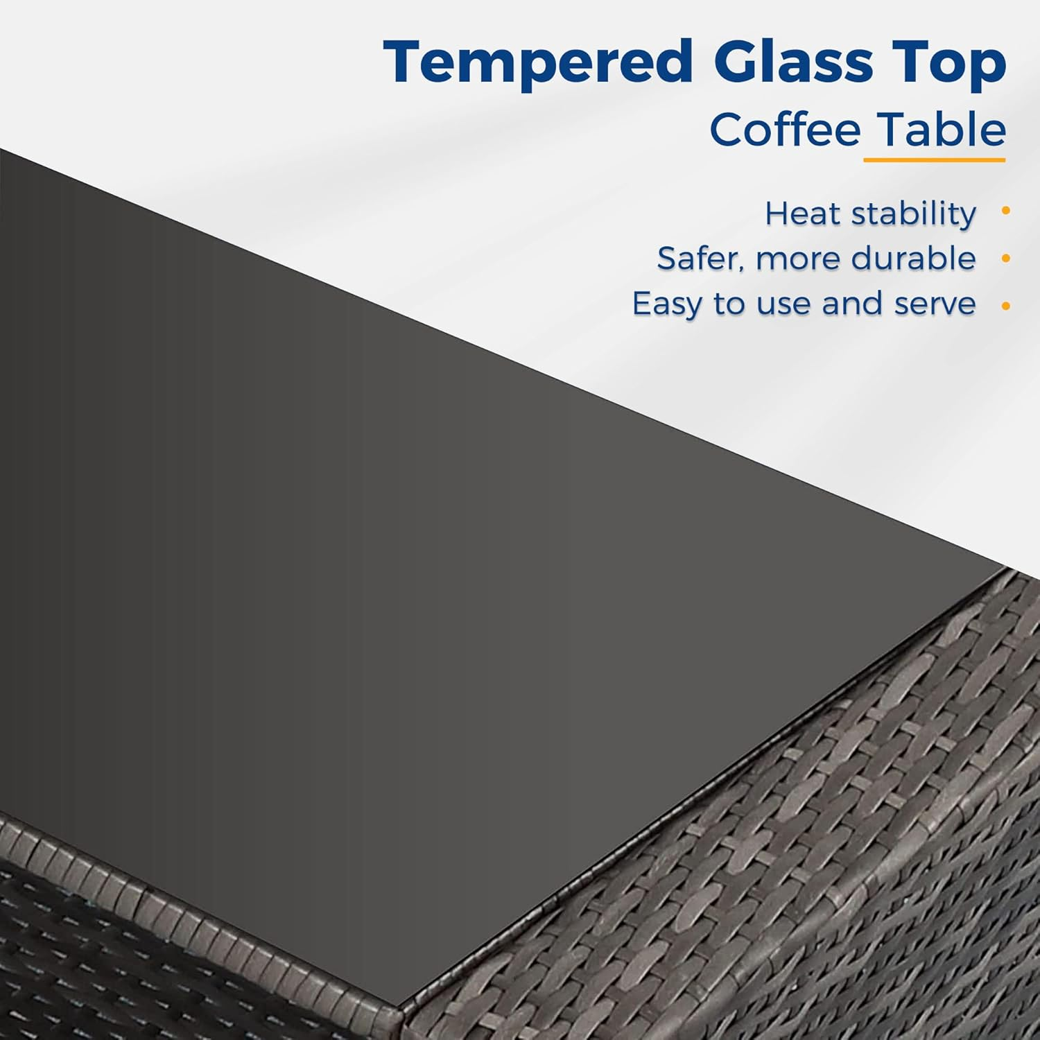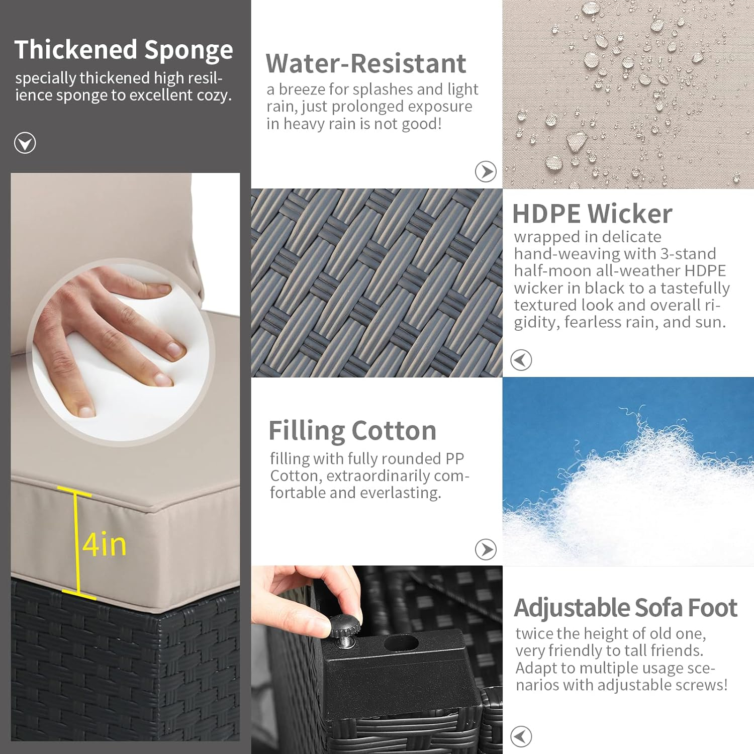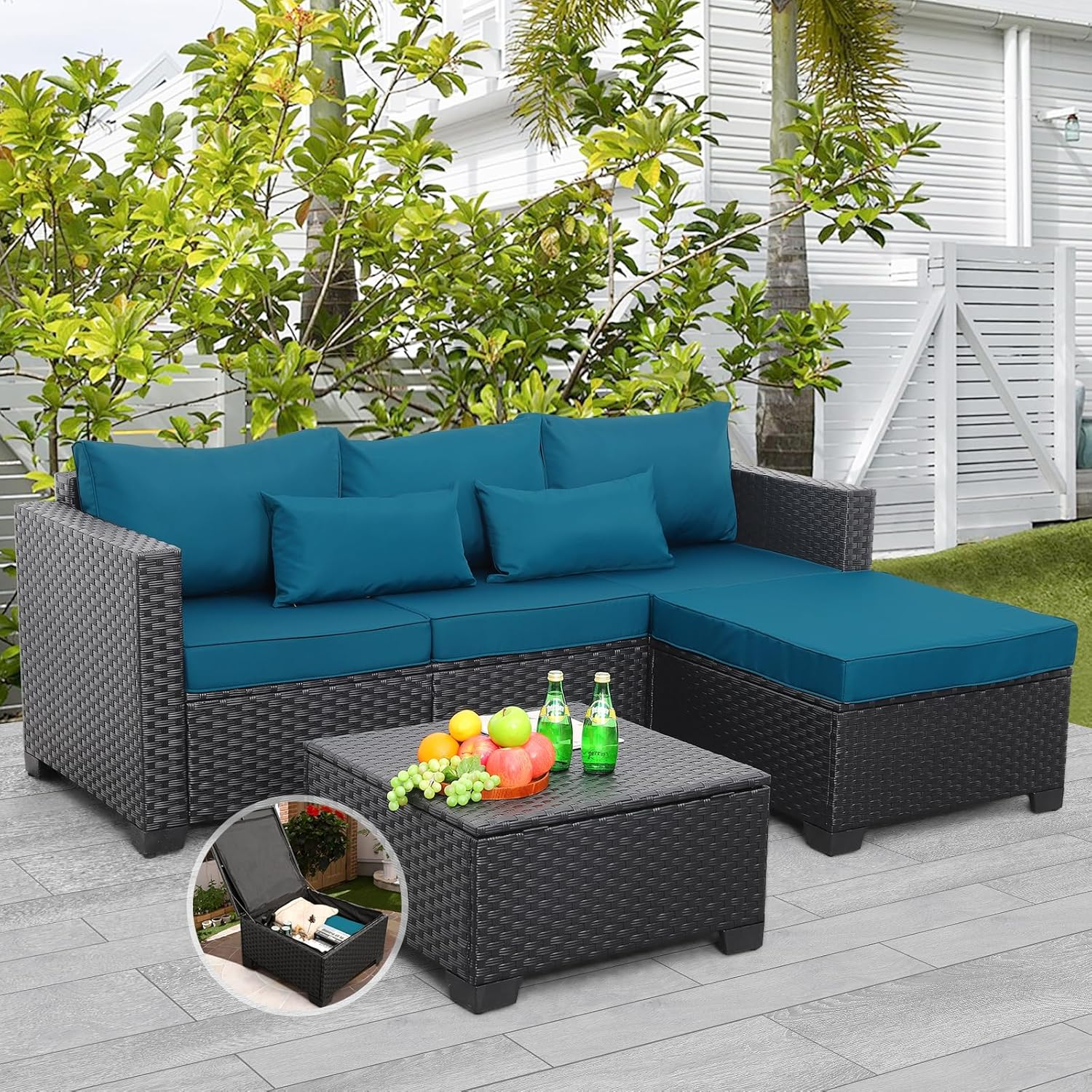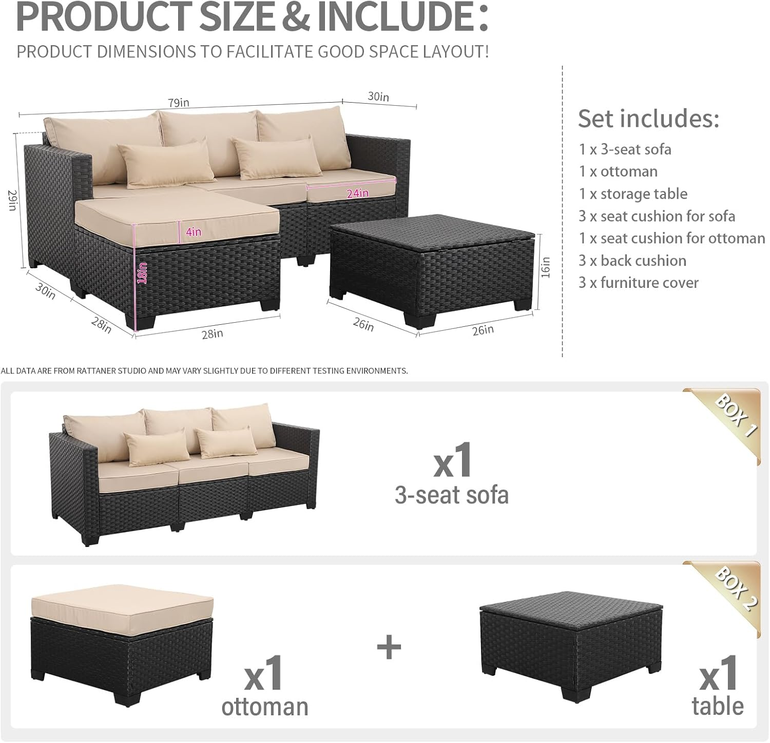 Rattaner Outdoor Furniture Set 3 Pieces Wicker Patio Furniture Outdoor Sectional Patio Couch Outdoor Coffee Table with Storage All-Weather Non-Slip Cushions Waterproof Covers