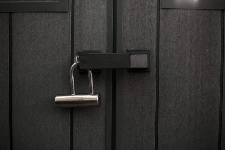 Keter Newton 7.5x11 Large Resin Outdoor Storage Shed Kit – Perfect to Store Patio Furniture, Garden Tools, Bike Accessories, and Lawn Mower, Mahogany Brown