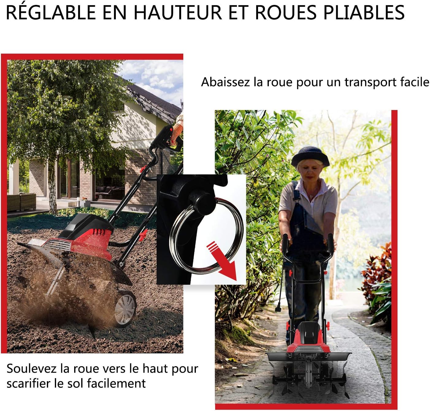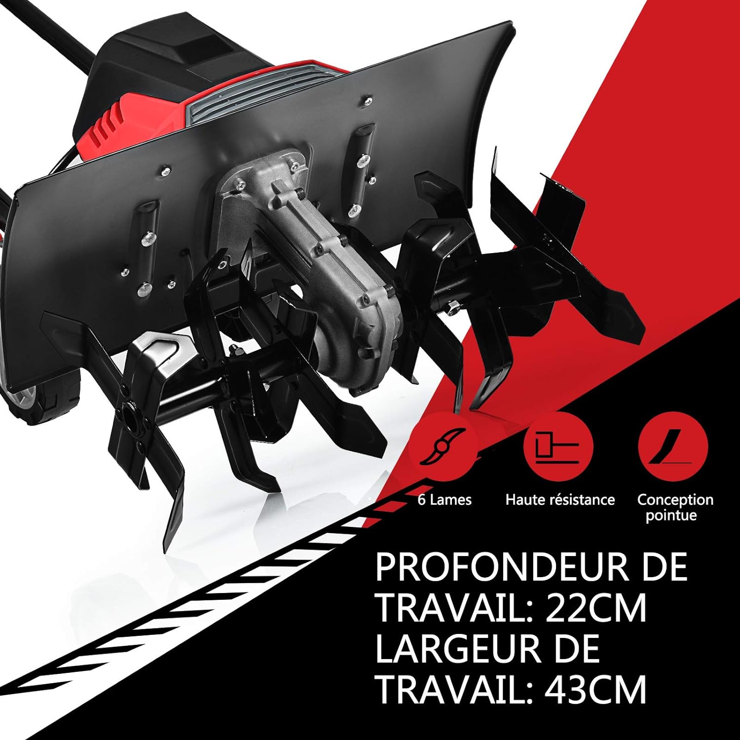 COSTWAY Electric Tiller 1500W Working Depth 22CM Width 43CM with Foldable Handle and Adjustable Wheels 6 Blades for Gardening and Weeding
