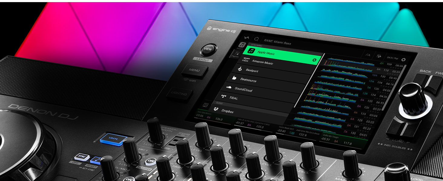 - Laptop-Free Performances with Engine DJ OS - No computer required for professional DJ performances; Bring music tracks to your controller via SD slot and 2 USB ins; Choose your songs and browse your library with the 7" Touchscreen