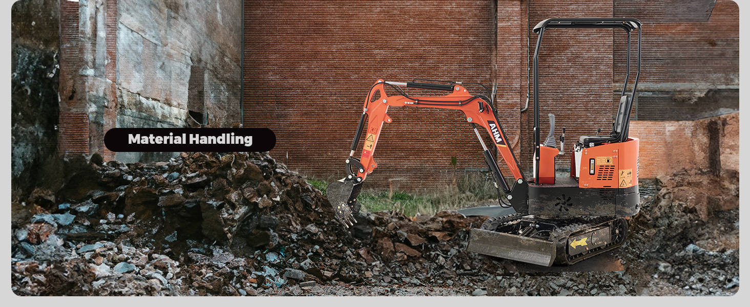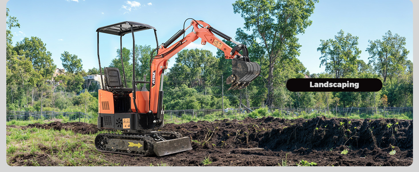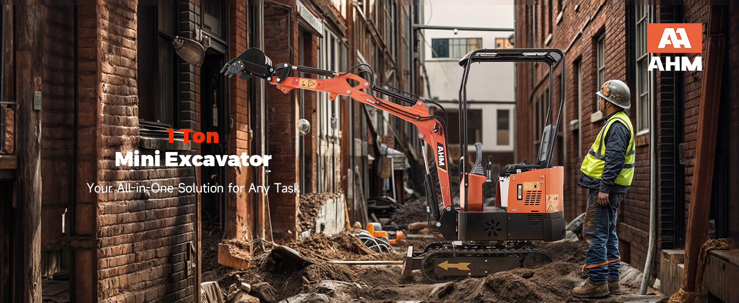 - Exceptional Strength: Powered by a robust 13.5 hp engine, AHM's 1 ton mini excavator offers a 5.9 ft. digging depth and 2585 lbf of digging force. It's built for tough jobs such as excavation, lifting, landscaping, demolition, and material handling