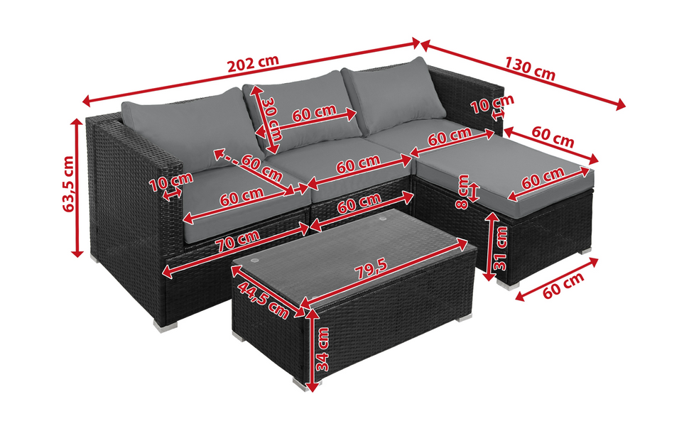 Frame material: Steel, powder-coated, frost-proof, water-repellent, salt water and chlorine water resistant, tightly intertwined, weatherproof and dirt-repellent polyrattan with flat fibre