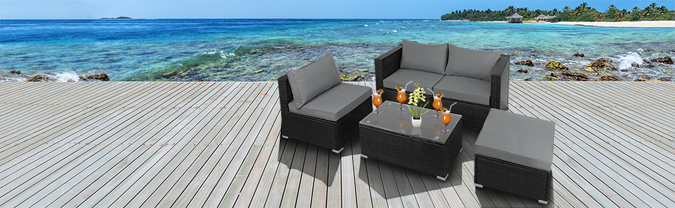 Poly rattan weave: Cleaning should be done with a sponge or a soft brush. Do not use aggressive and/or solvent-containing cleaners