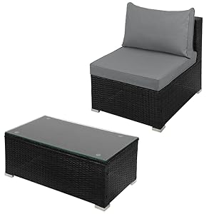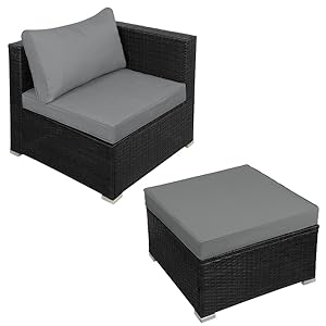 Furniture colour: Titanium BlackCover Color: Pebble beach (grey). Cover material: 100% polyester. Cushion material: Foam total weight: approx. 50 kg. Load capacity per seat: 120 kg. Cushion thickness: Seat cushion 8 cm / back cushion approx. 18 cm